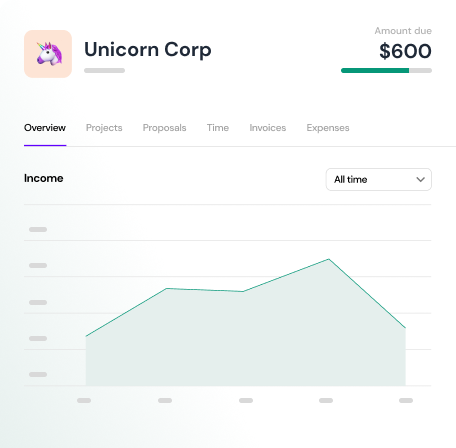 Share all your progress with your clients; hours, invoices, proposals, and contracts.